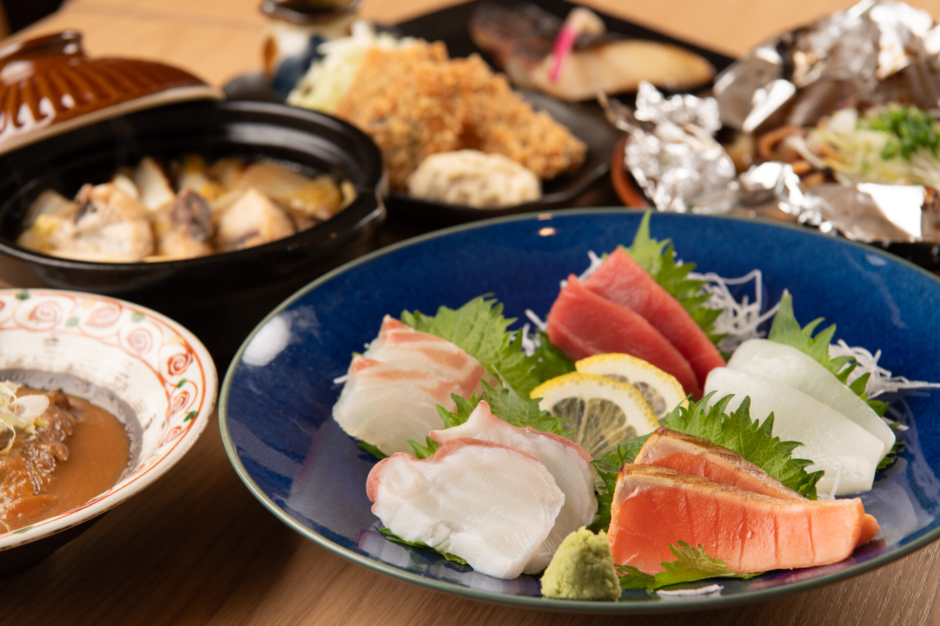 | コース内容 | ▪️山椒醤油漬け枝豆▪️なごみサラダ ▪️鮮魚5点盛り合わせ▪️本日の焼き物 ▪️本日の揚げ物▪️おすすめ逸品 ▪️季節の土鍋ご飯▪️しじみの味噌汁 ▪️デザート |